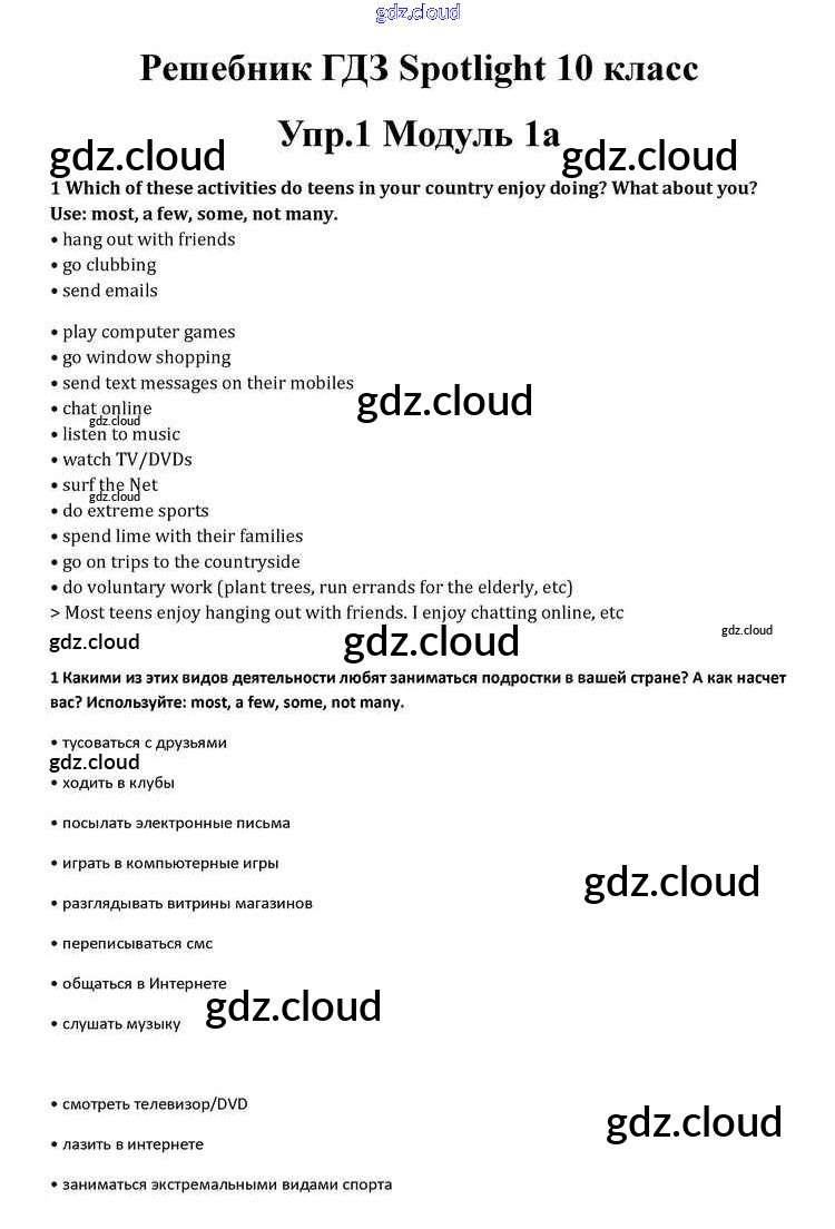 Ответ на задание 1 Учебник Английский язык за 10 (десятый) класс Афанасьева, Дули, Михеева, Оби, Эванс Spotlight 2015