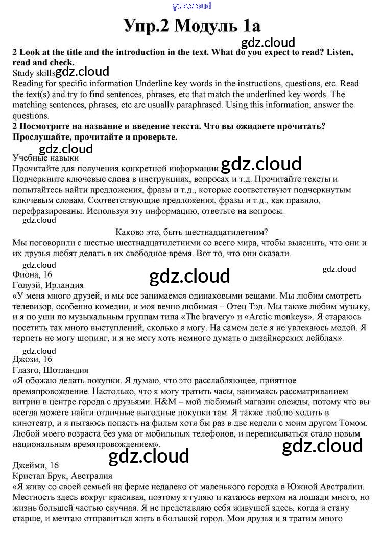 Ответ на задание 2 Учебник Английский язык за 10 (десятый) класс Афанасьева, Дули, Михеева, Оби, Эванс Spotlight 2015