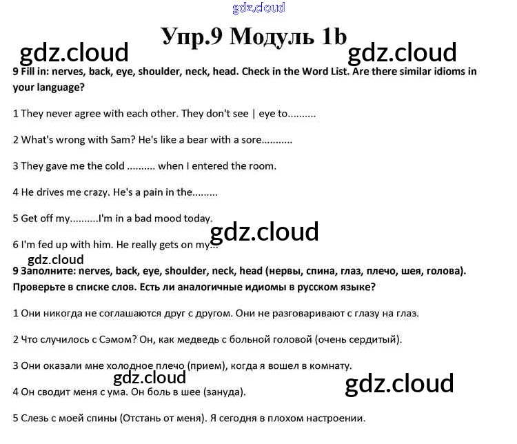 Ответ на задание 9 Учебник Английский язык за 10 (десятый) класс Афанасьева, Дули, Михеева, Оби, Эванс Spotlight 2015