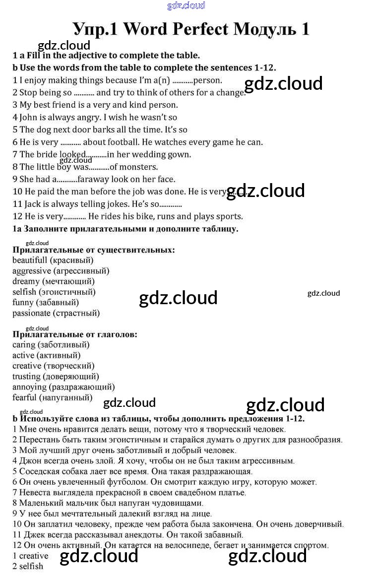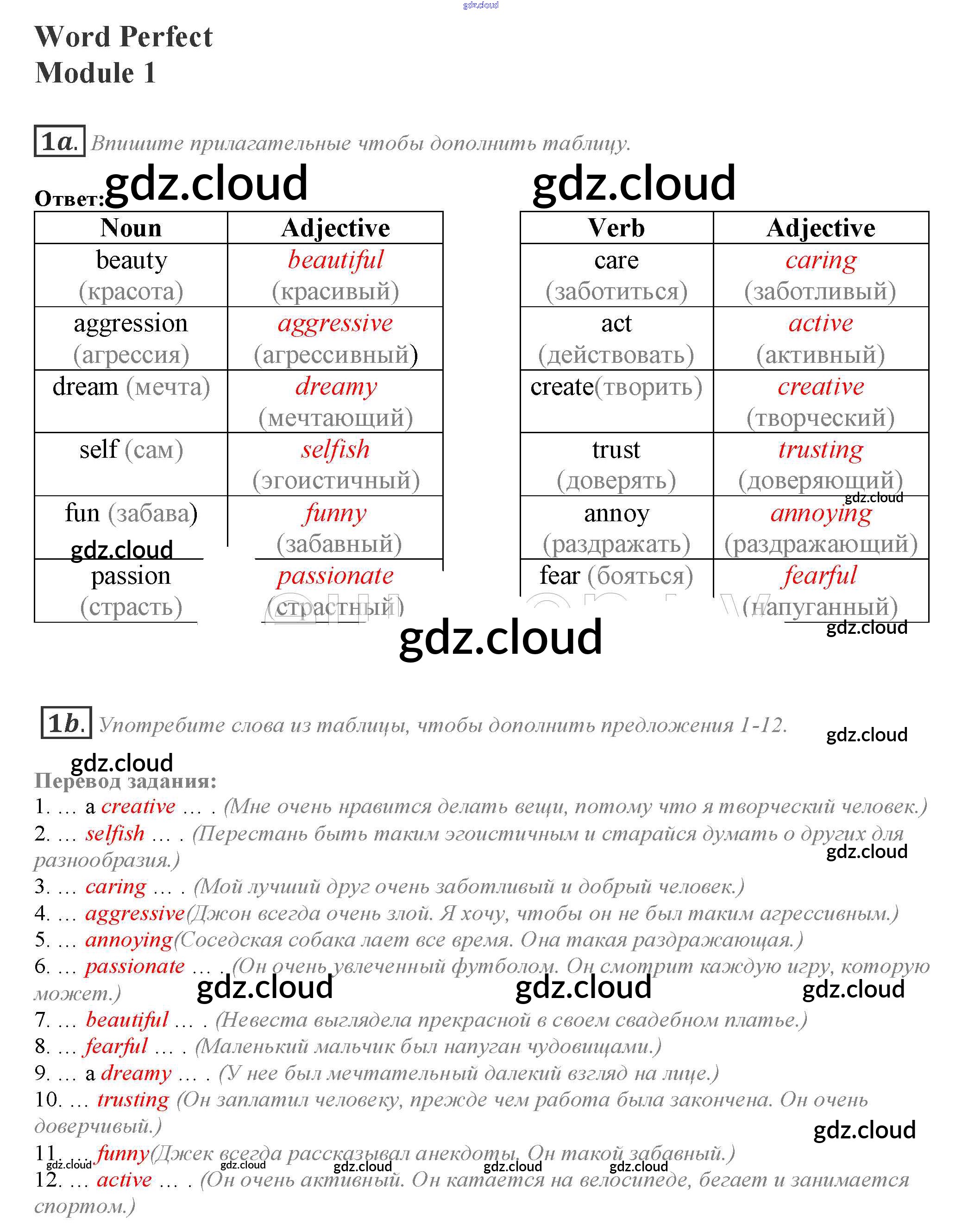 Module 1 Ответы к Word Perfect по Английскому языку 10 класс Учебник Афанасьева Spotlight Просвещение