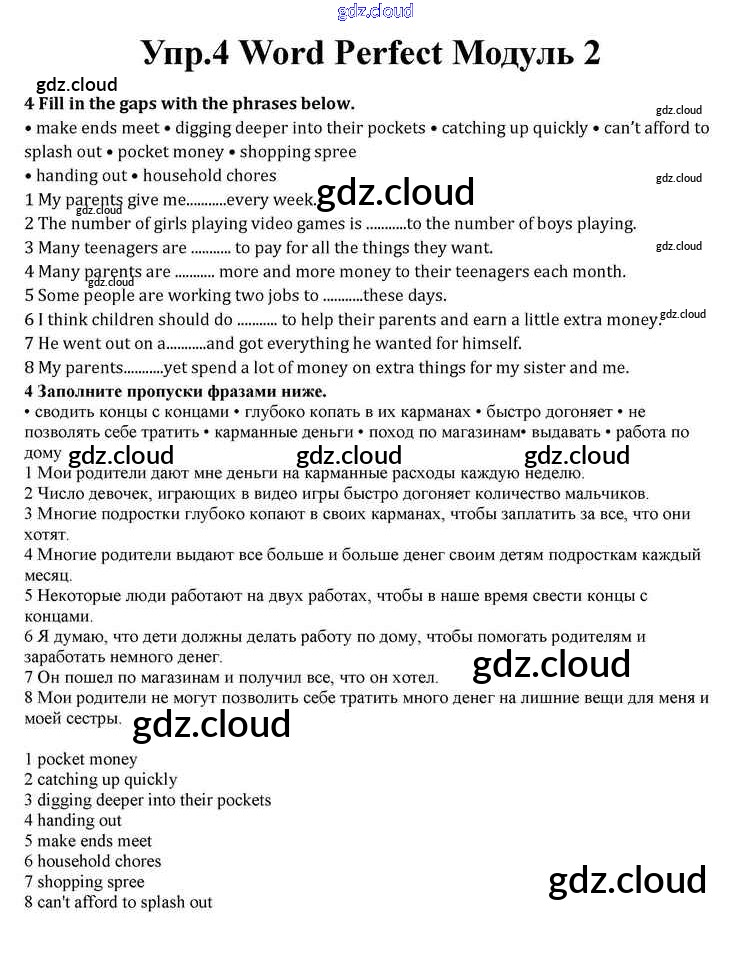 Module 2 Ответы к Word Perfect по Английскому языку 10 класс Учебник Афанасьева Spotlight Просвещение