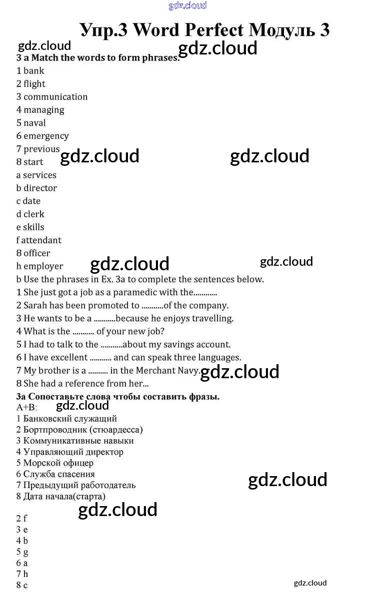 Module 3 Ответы к Word Perfect по Английскому языку 10 класс Учебник Афанасьева Spotlight Просвещение