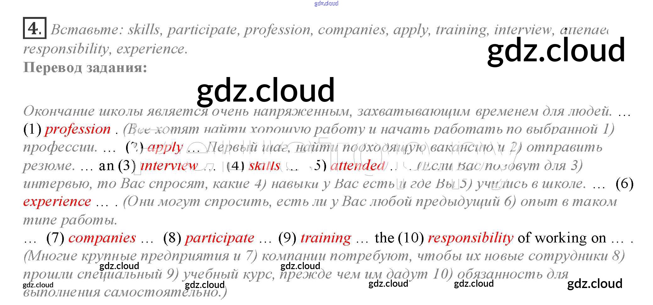 Ответ на задание 4 Учебник Английский язык за 10 (десятый) класс Афанасьева, Дули, Михеева, Оби, Эванс Spotlight 2015
