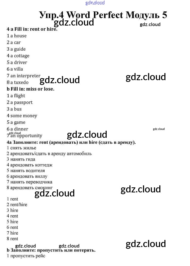 Module 5 Ответы к Word Perfect по Английскому языку 10 класс Учебник Афанасьева Spotlight Просвещение
