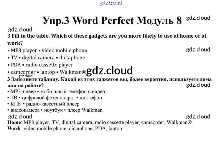 Module 8 Ответы к Word Perfect по Английскому языку 10 класс Учебник Афанасьева Spotlight Просвещение
