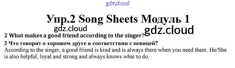 Module 1 Ответы к Song Sheets по Английскому языку 10 класс Учебник Афанасьева Spotlight Просвещение