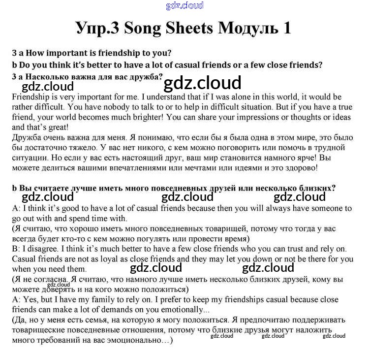 Module 1 Ответы к Song Sheets по Английскому языку 10 класс Учебник Афанасьева Spotlight Просвещение