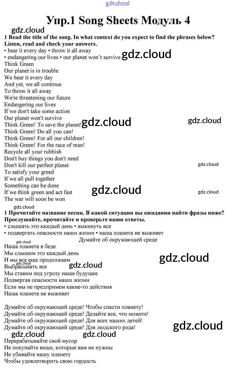 Module 4 Ответы к Song Sheets по Английскому языку 10 класс Учебник Афанасьева Spotlight Просвещение