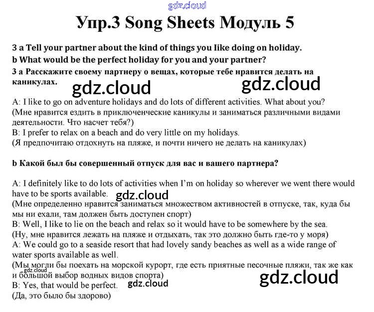 Module 5 Ответы к Song Sheets по Английскому языку 10 класс Учебник Афанасьева Spotlight Просвещение