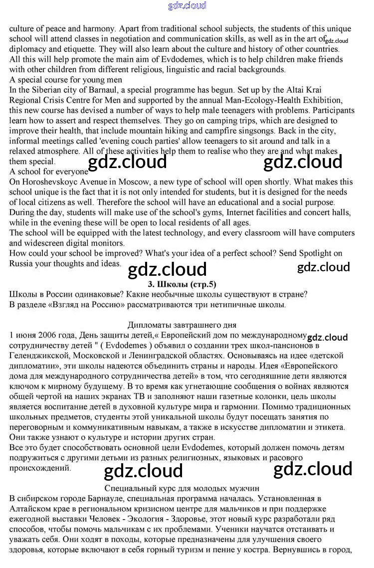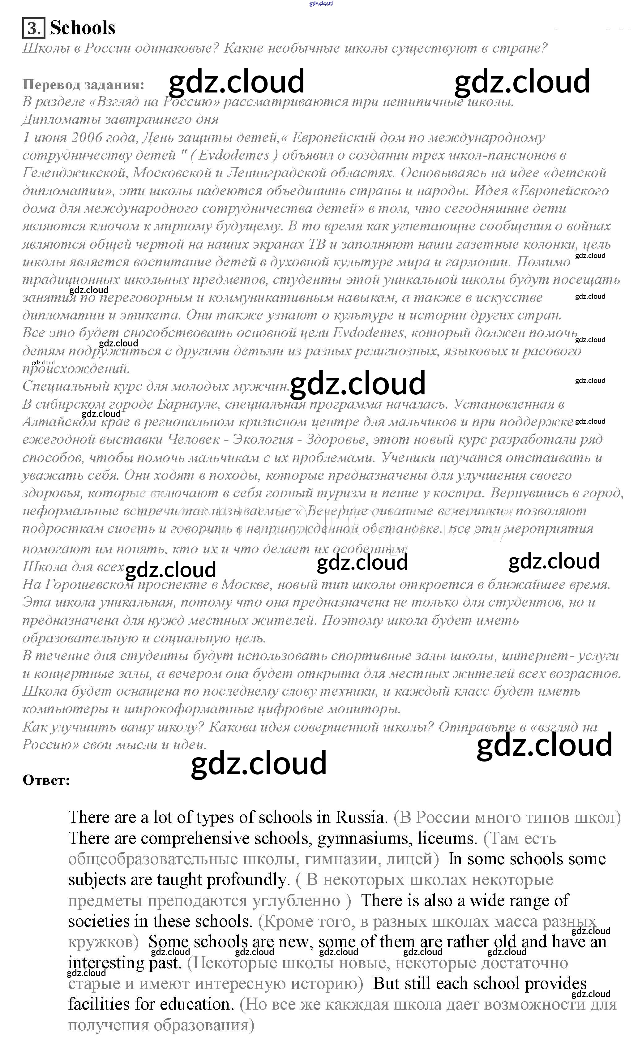 Ответ на задание 3. Schools Учебник Английский язык за 10 (десятый) класс Афанасьева, Дули, Михеева, Оби, Эванс Spotlight 2015