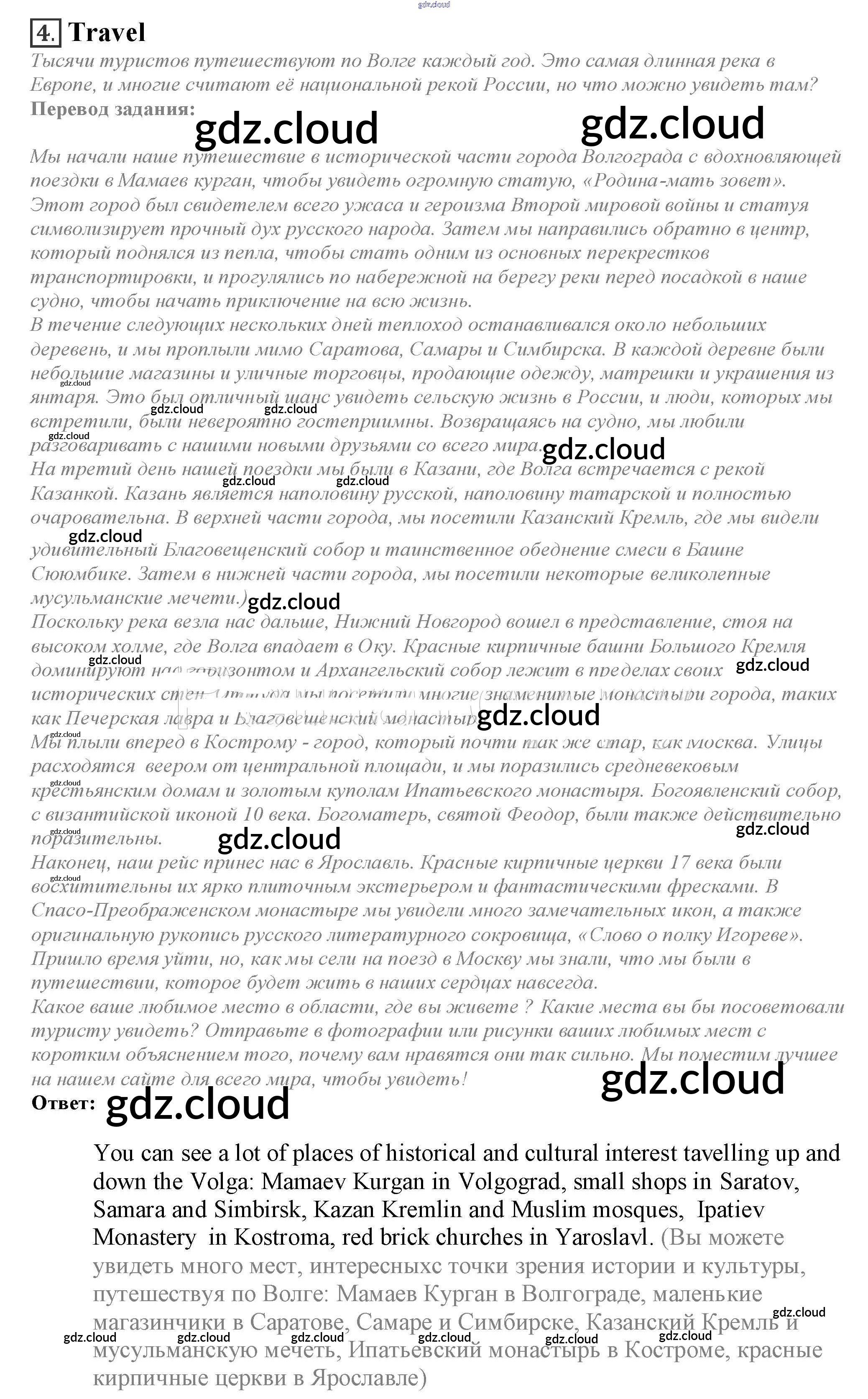 Ответ на задание 4. Travel Учебник Английский язык за 10 (десятый) класс Афанасьева, Дули, Михеева, Оби, Эванс Spotlight 2015