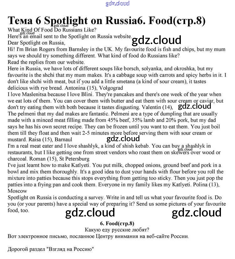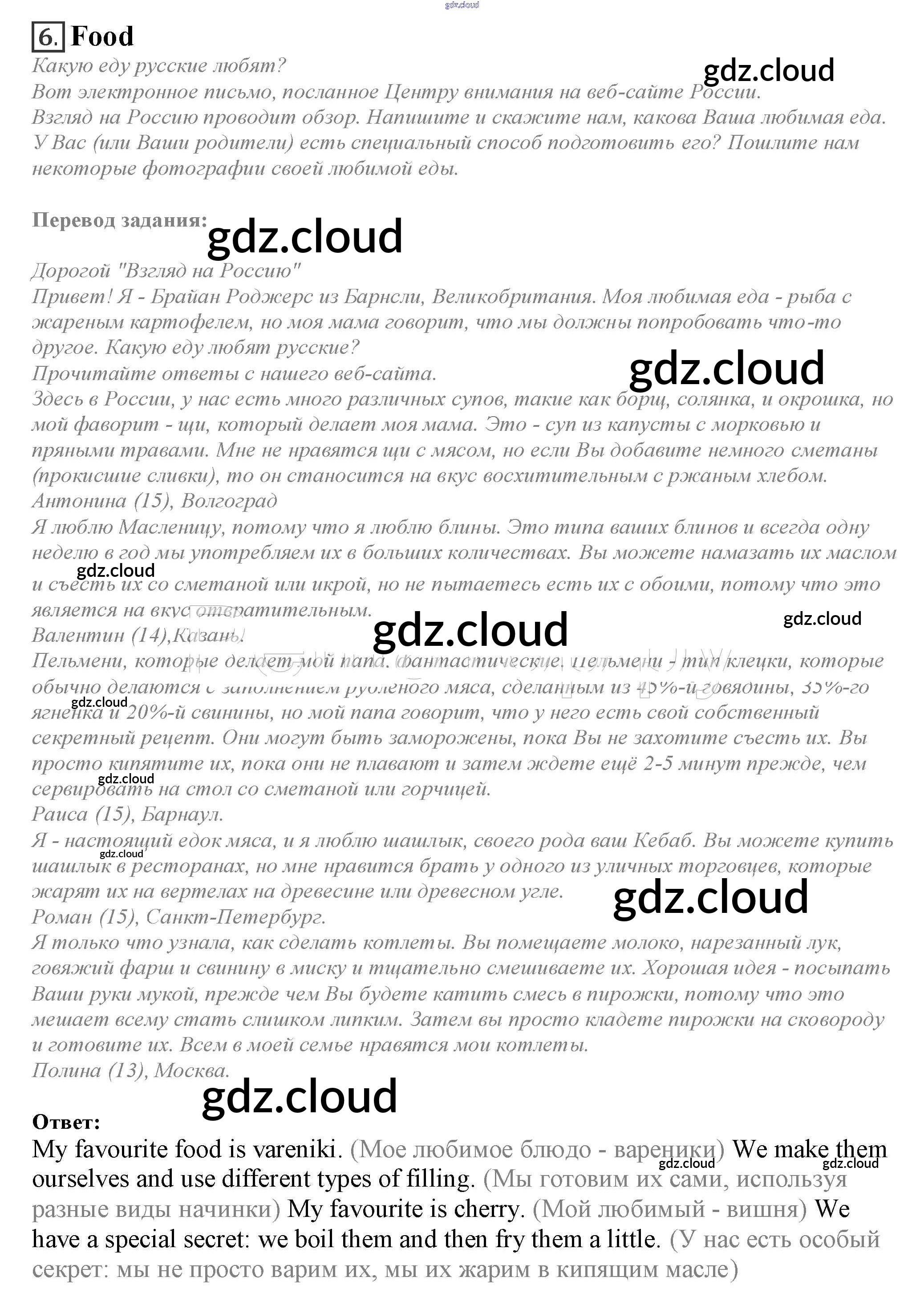 Ответ на задание 6. Food Учебник Английский язык за 10 (десятый) класс Афанасьева, Дули, Михеева, Оби, Эванс Spotlight 2015