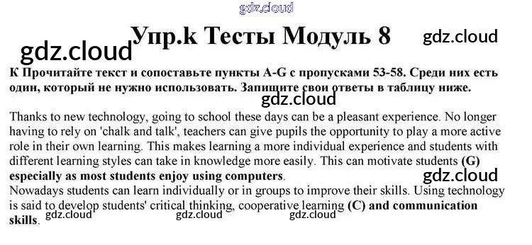 Ответ на задание k Учебник Английский язык за 10 (десятый) класс Афанасьева, Дули, Михеева, Оби, Эванс Spotlight 2015