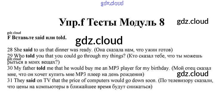 Ответ на задание f Учебник Английский язык за 10 (десятый) класс Афанасьева, Дули, Михеева, Оби, Эванс Spotlight 2015