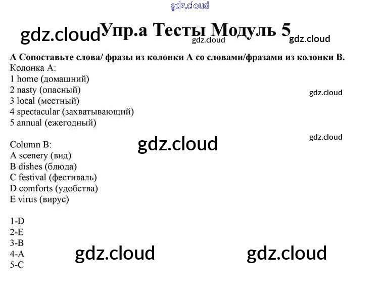 Modul 5 Ответы к Книга с тестами по Английскому языку 10 класс Учебник Афанасьева Spotlight Просвещение
