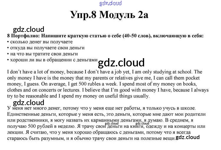 Ответ на задание 8 Учебник Английский язык за 10 (десятый) класс Афанасьева, Дули, Михеева, Оби, Эванс Spotlight 2015