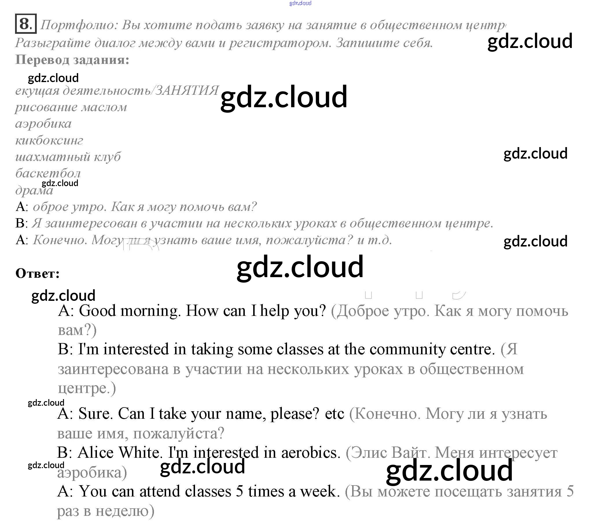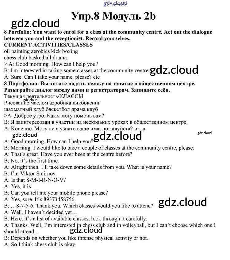Ответ на задание 8 Учебник Английский язык за 10 (десятый) класс Афанасьева, Дули, Михеева, Оби, Эванс Spotlight 2015