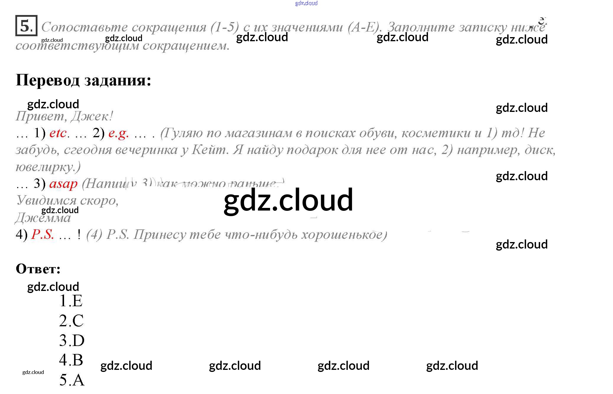 Ответ на задание 5 Учебник Английский язык за 10 (десятый) класс Афанасьева, Дули, Михеева, Оби, Эванс Spotlight 2015