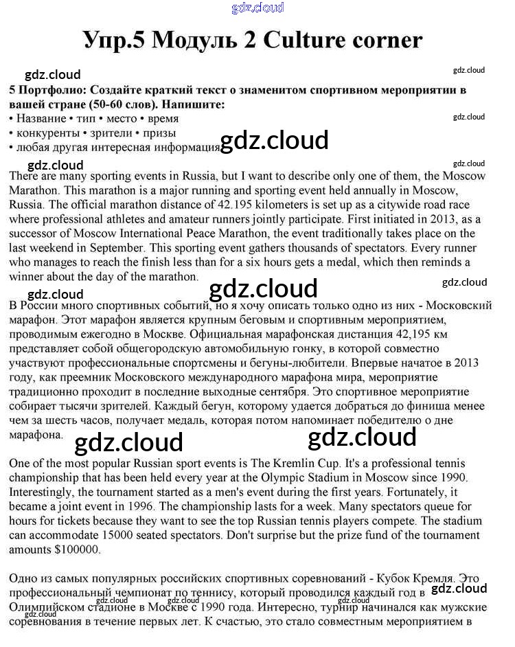 Culture corner Ответы к Module 2 по Английскому языку 10 класс Учебник Афанасьева Spotlight Просвещение