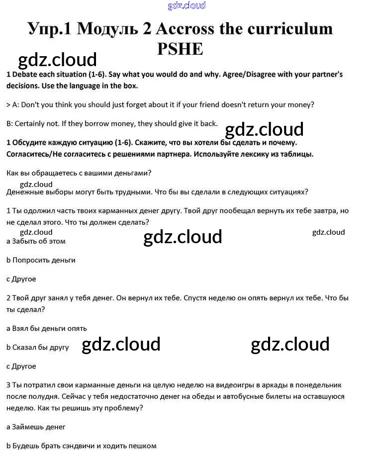 Accross the curriculum PSHE Ответы к Module 2 по Английскому языку 10 класс Учебник Афанасьева Spotlight Просвещение