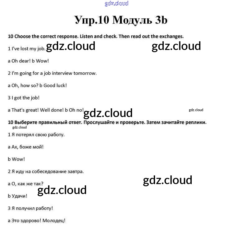 Ответ на задание 10 Учебник Английский язык за 10 (десятый) класс Афанасьева, Дули, Михеева, Оби, Эванс Spotlight 2015