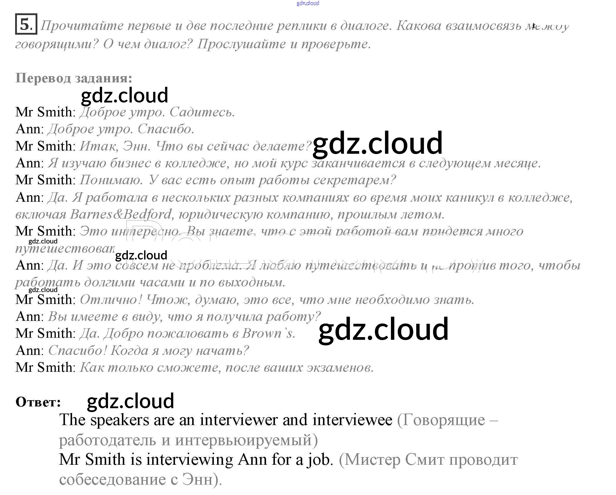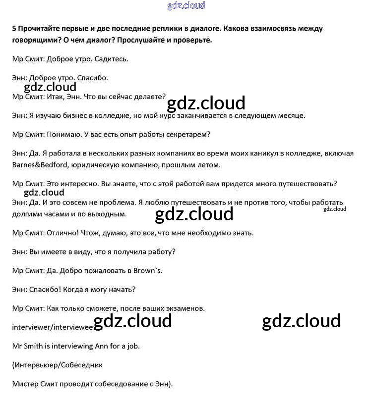 Ответ на задание 5 Учебник Английский язык за 10 (десятый) класс Афанасьева, Дули, Михеева, Оби, Эванс Spotlight 2015