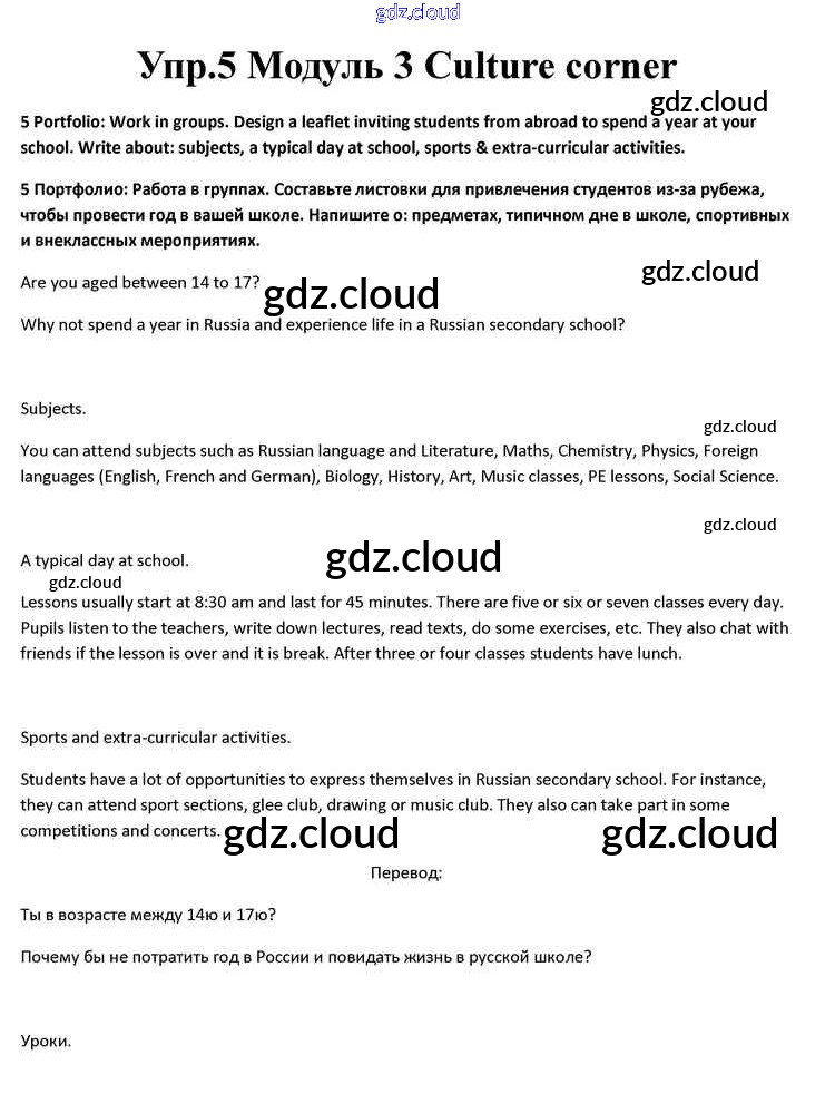 Ответ на задание 5 Учебник Английский язык за 10 (десятый) класс Афанасьева, Дули, Михеева, Оби, Эванс Spotlight 2015