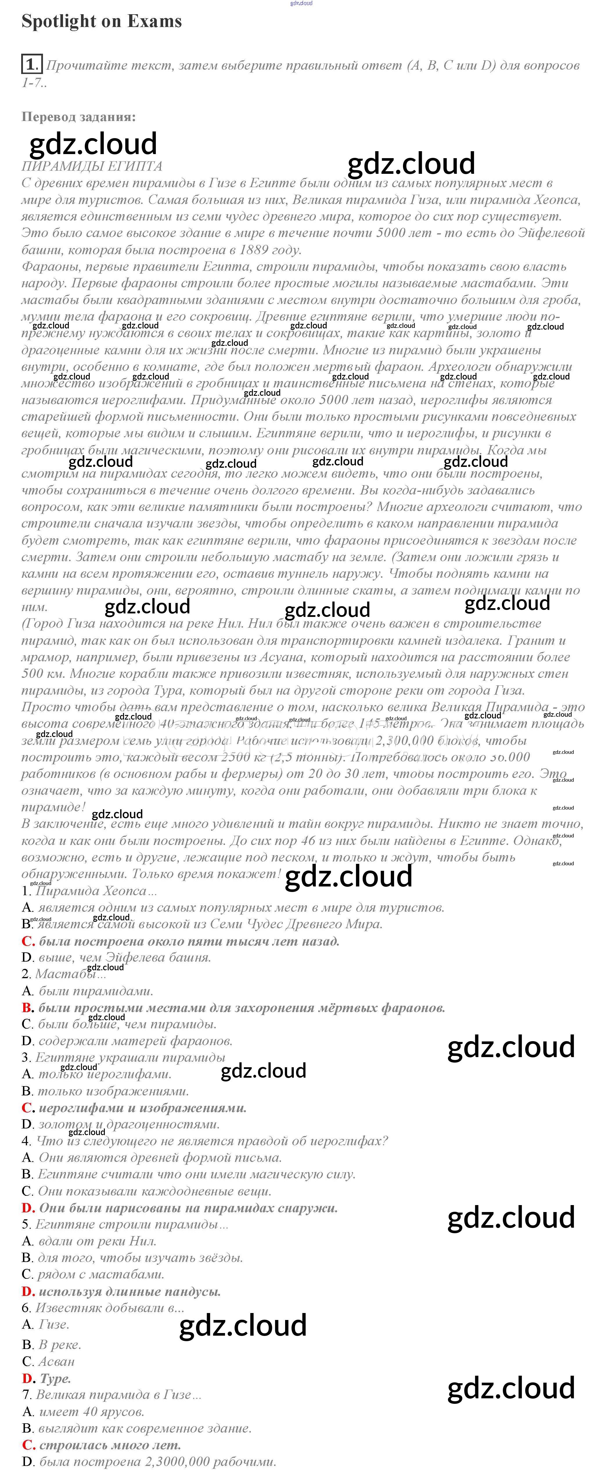 Spotlight on Exams Ответы к Module 5 по Английскому языку 10 класс Учебник Афанасьева Spotlight Просвещение