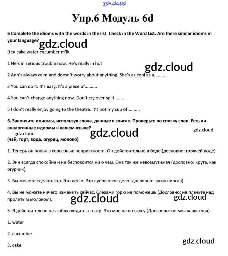 Ответ на задание 6 Учебник Английский язык за 10 (десятый) класс Афанасьева, Дули, Михеева, Оби, Эванс Spotlight 2015