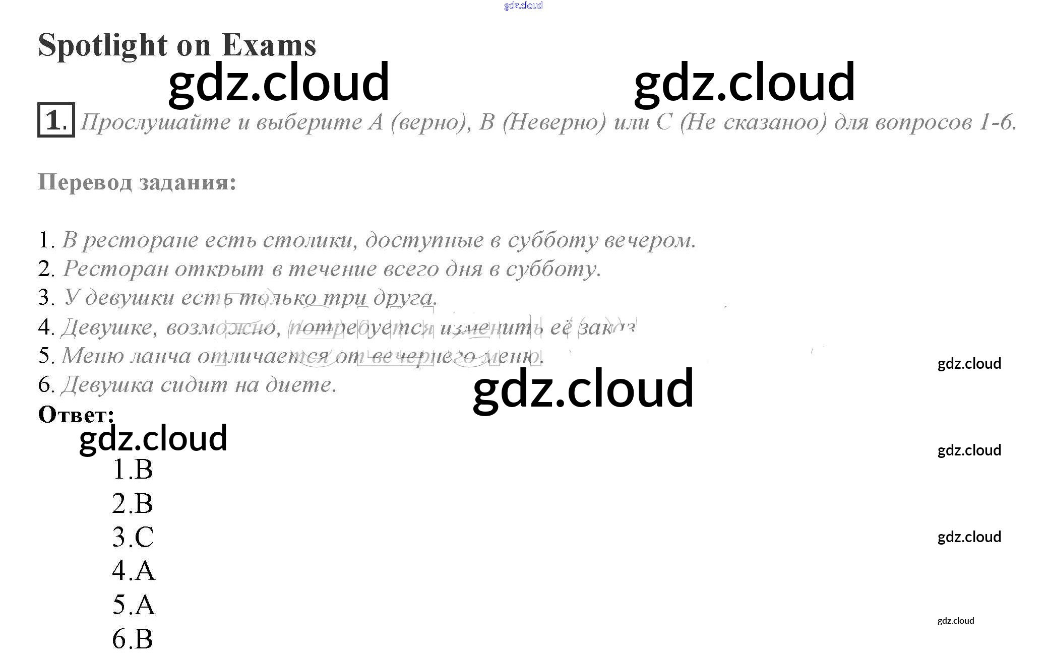 Spotlight on Exams Ответы к Module 6 по Английскому языку 10 класс Учебник Афанасьева Spotlight Просвещение