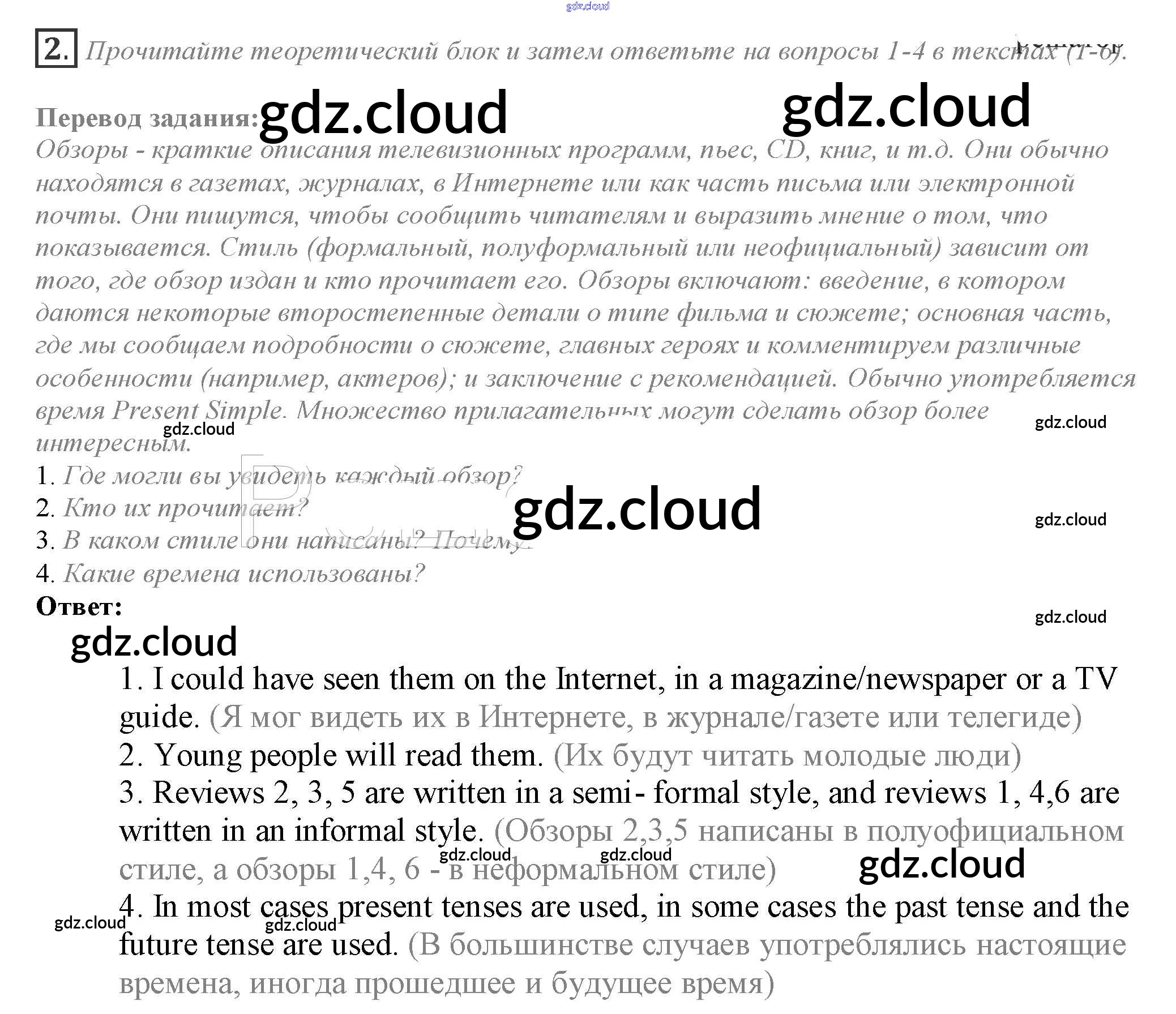 Ответ на задание 2 Учебник Английский язык за 10 (десятый) класс Афанасьева, Дули, Михеева, Оби, Эванс Spotlight 2015