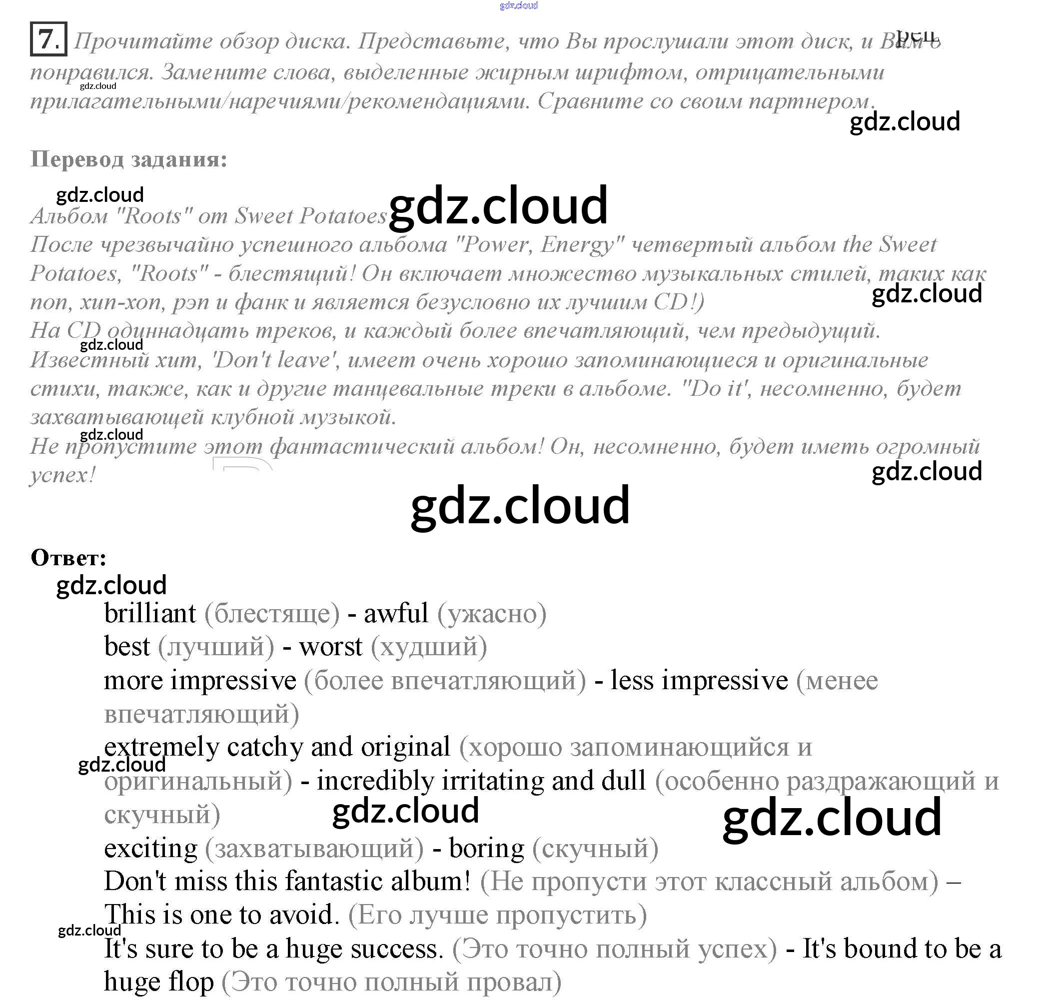 Ответ на задание 7 Учебник Английский язык за 10 (десятый) класс Афанасьева, Дули, Михеева, Оби, Эванс Spotlight 2015