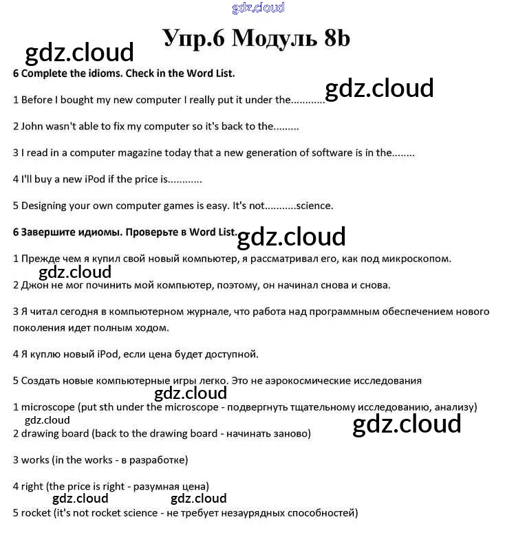 Ответ на задание 6 Учебник Английский язык за 10 (десятый) класс Афанасьева, Дули, Михеева, Оби, Эванс Spotlight 2015