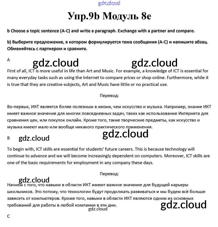 Ответ на задание 9b Учебник Английский язык за 10 (десятый) класс Афанасьева, Дули, Михеева, Оби, Эванс Spotlight 2015