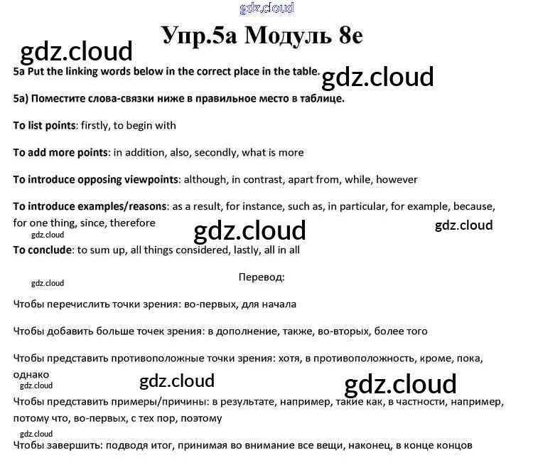 Ответ на задание 5a Учебник Английский язык за 10 (десятый) класс Афанасьева, Дули, Михеева, Оби, Эванс Spotlight 2015