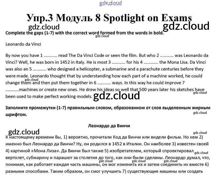 Spotlight on Exams Ответы к Module 8 по Английскому языку 10 класс Учебник Афанасьева Spotlight Просвещение
