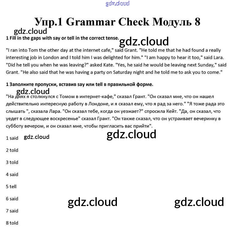 Module 8 Ответы к Grammar Check по Английскому языку 10 класс Учебник Афанасьева Spotlight Просвещение