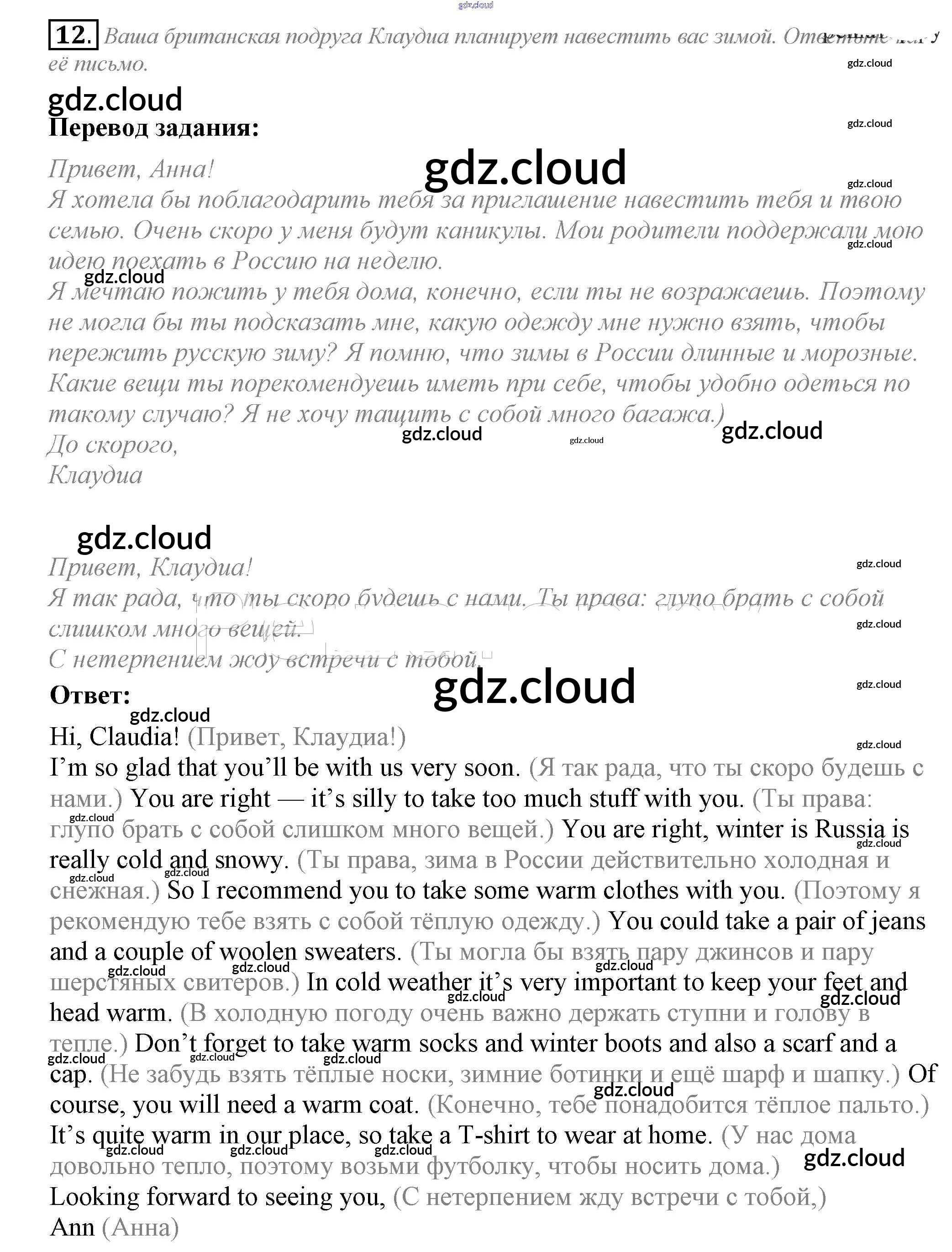 Ответ на задание 12 Рабочая тетрадь Английский язык за 10 (десятый) класс Биболетова, Бабушис, Снежко Enjoy English 2016