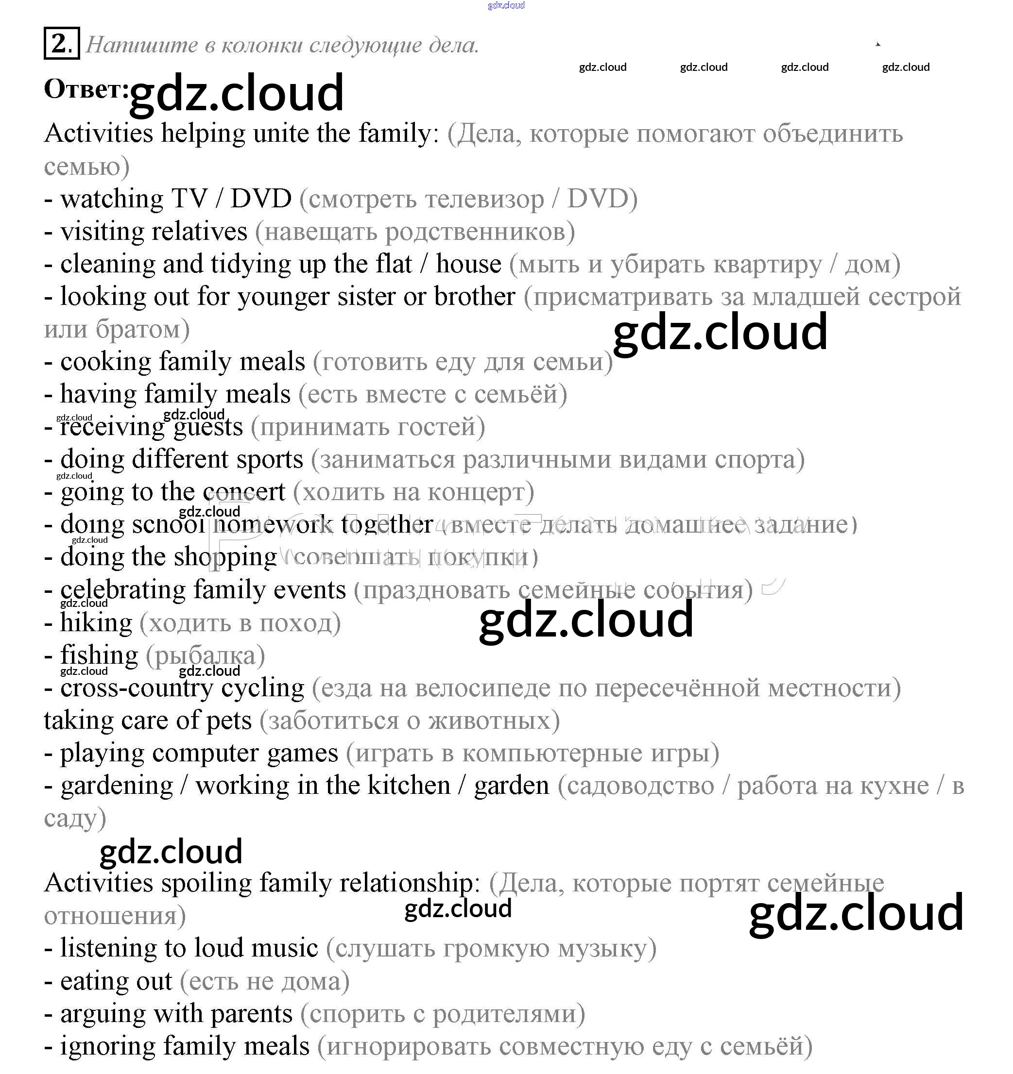 Ответ на задание 2 Рабочая тетрадь Английский язык за 10 (десятый) класс Биболетова, Бабушис, Снежко Enjoy English 2016