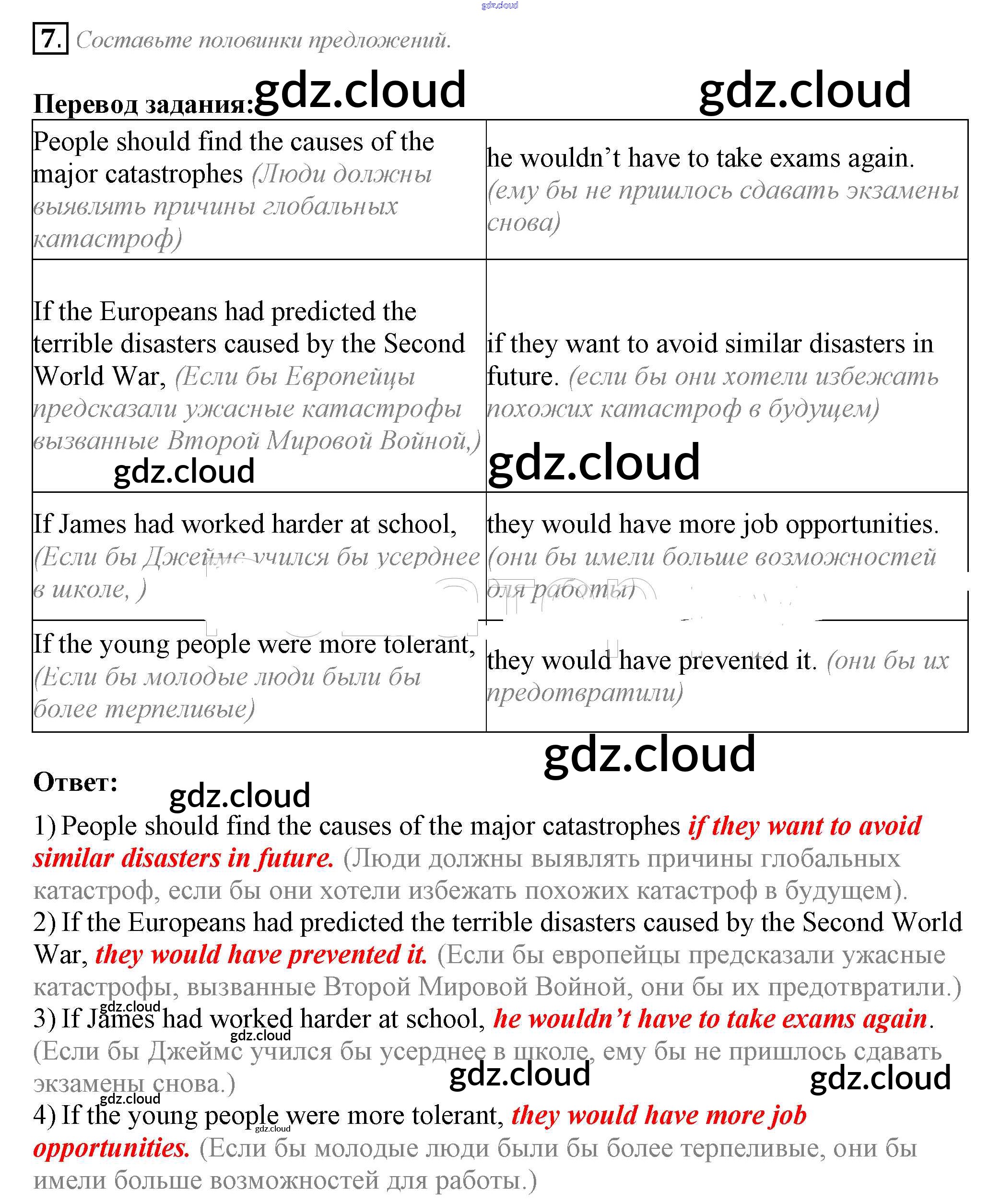 Ответ на задание 7 Рабочая тетрадь Английский язык за 10 (десятый) класс Биболетова, Бабушис, Снежко Enjoy English 2016