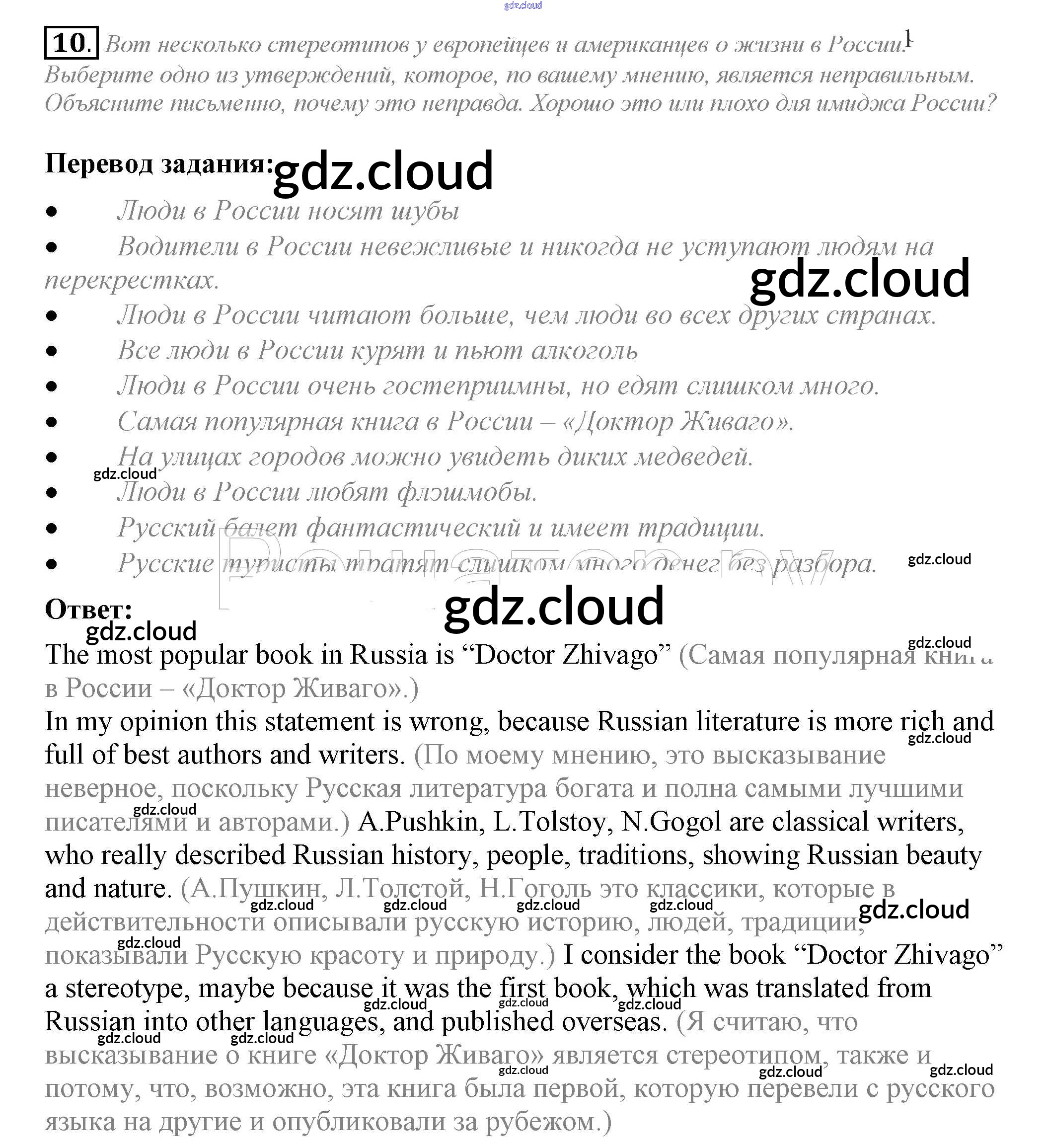 Ответ на задание 10 Рабочая тетрадь Английский язык за 10 (десятый) класс Биболетова, Бабушис, Снежко Enjoy English 2016
