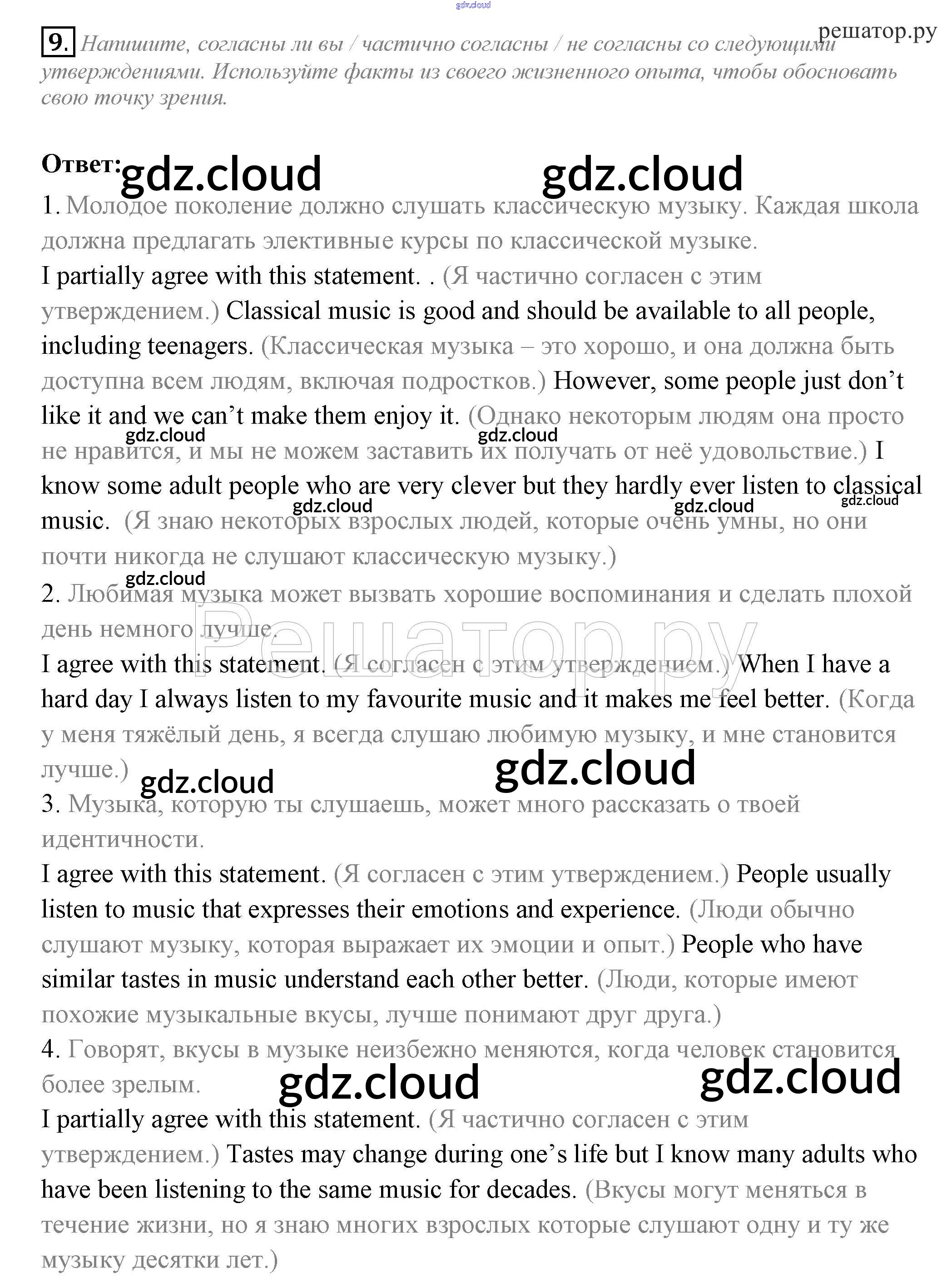 Ответ на задание 9 Рабочая тетрадь Английский язык за 10 (десятый) класс Биболетова, Бабушис, Снежко Enjoy English 2016