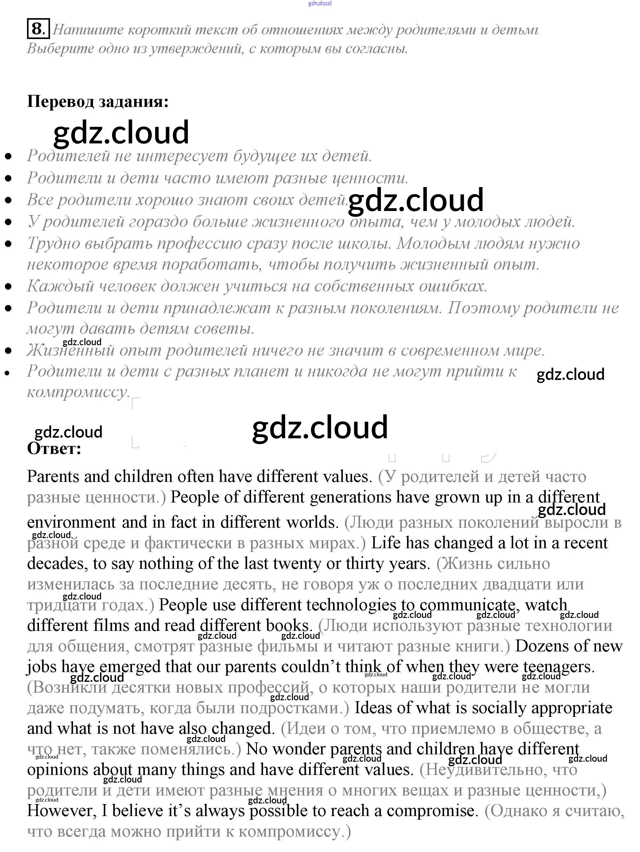 Ответ на задание 8 Рабочая тетрадь Английский язык за 10 (десятый) класс Биболетова, Бабушис, Снежко Enjoy English 2016
