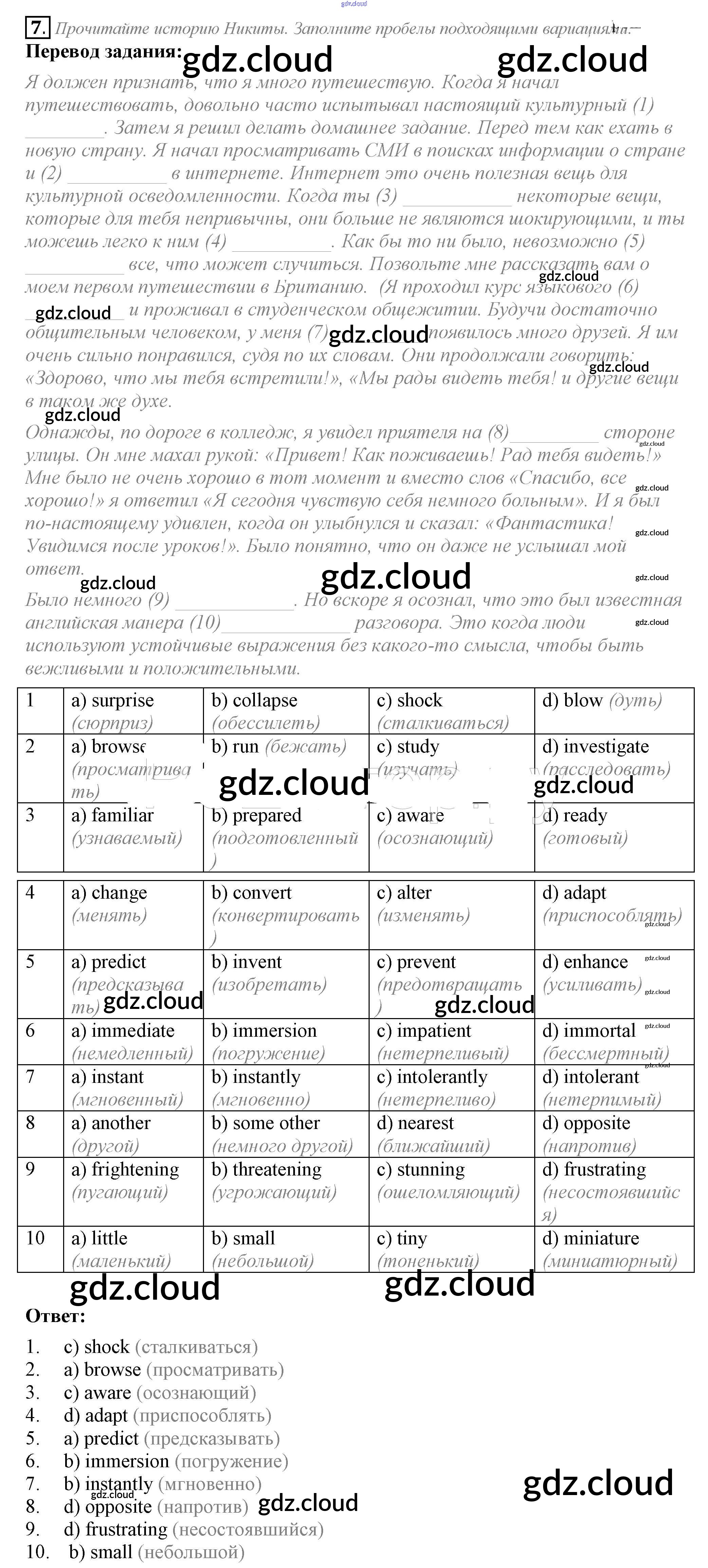 Ответ на задание 7 Рабочая тетрадь Английский язык за 10 (десятый) класс Биболетова, Бабушис, Снежко Enjoy English 2016