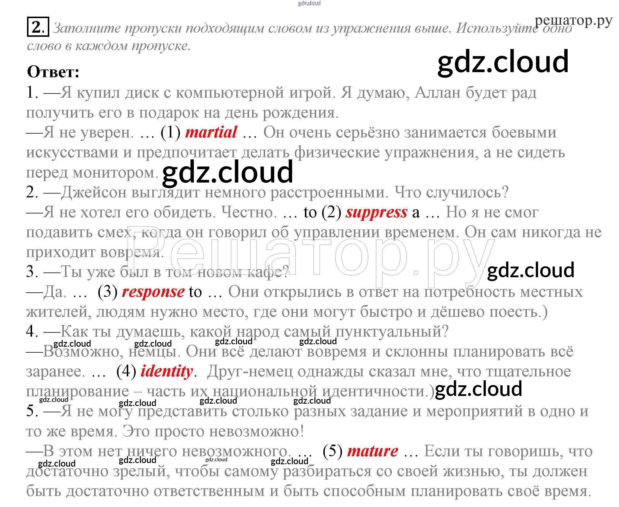 Ответ на задание 2 Рабочая тетрадь Английский язык за 10 (десятый) класс Биболетова, Бабушис, Снежко Enjoy English 2016