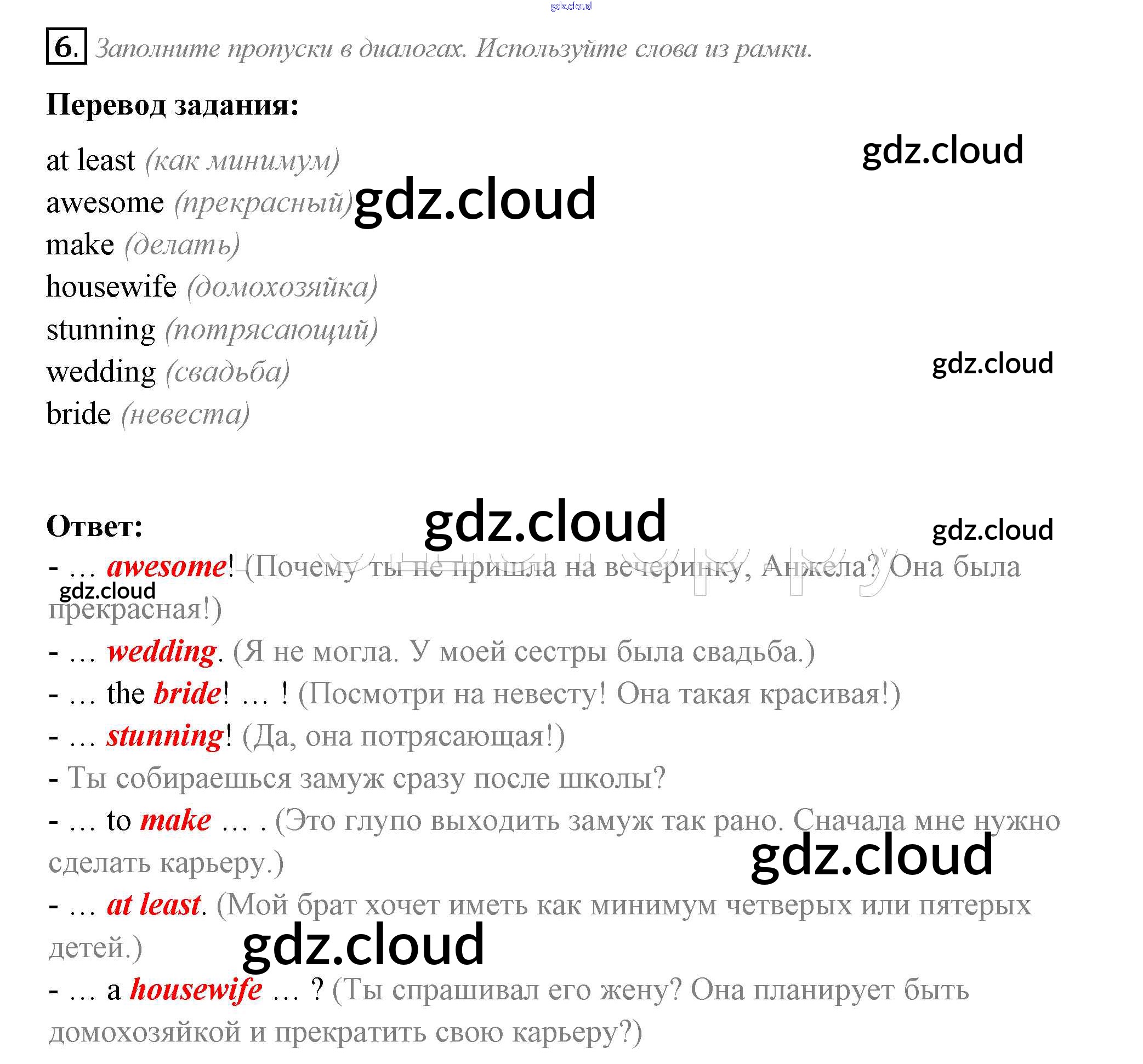 Ответ на задание 6 Рабочая тетрадь Английский язык за 10 (десятый) класс Биболетова, Бабушис, Снежко Enjoy English 2016