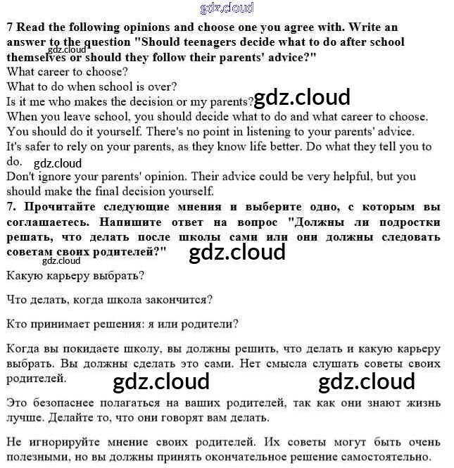Ответ на задание 7 Рабочая тетрадь Английский язык за 10 (десятый) класс Биболетова, Бабушис, Снежко Enjoy English 2013