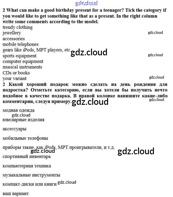 Ответ на задание 2 Рабочая тетрадь Английский язык за 10 (десятый) класс Биболетова, Бабушис, Снежко Enjoy English 2013