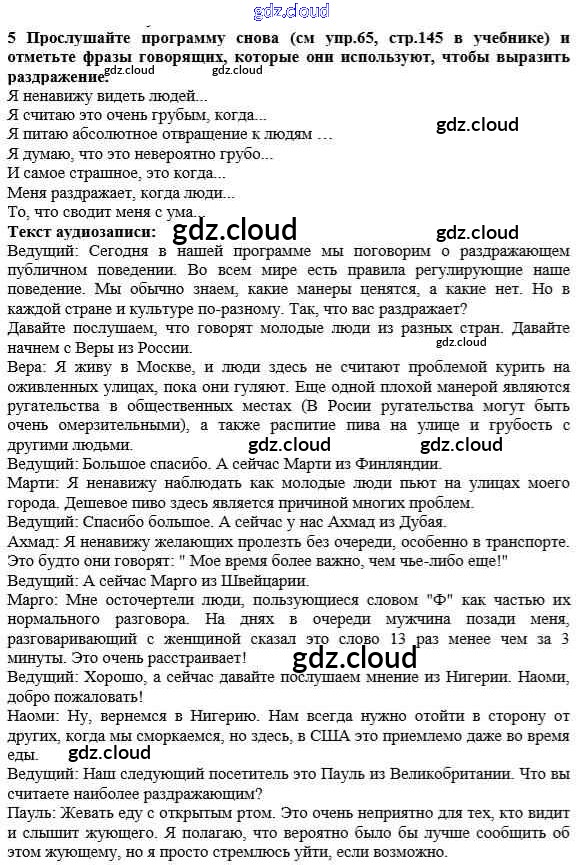 Ответ на задание 5 Рабочая тетрадь Английский язык за 10 (десятый) класс Биболетова, Бабушис, Снежко Enjoy English 2013