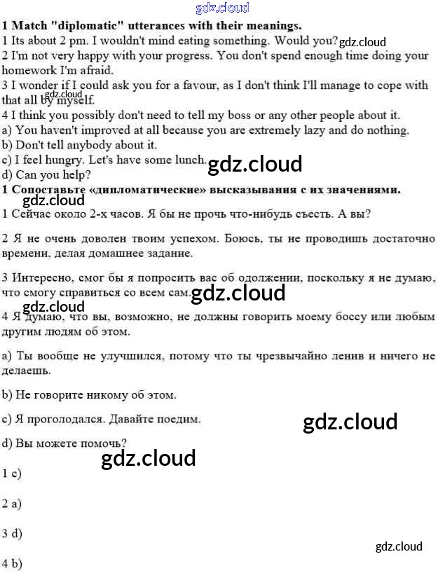 Ответ на задание 1 Рабочая тетрадь Английский язык за 10 (десятый) класс Биболетова, Бабушис, Снежко Enjoy English 2013